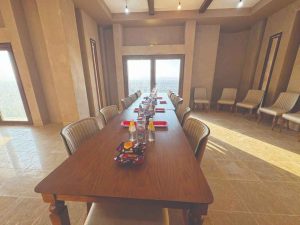 وی افزود: بخش های مختلفی؛ از جمله دریاچه و آبشار، هرچند هنوز کمی از تکمیل آن مانده است. وی گفت: مجموعه ی دهکده توریستی الهام گرفته؛ از خود معماری شهرستان بافق است».